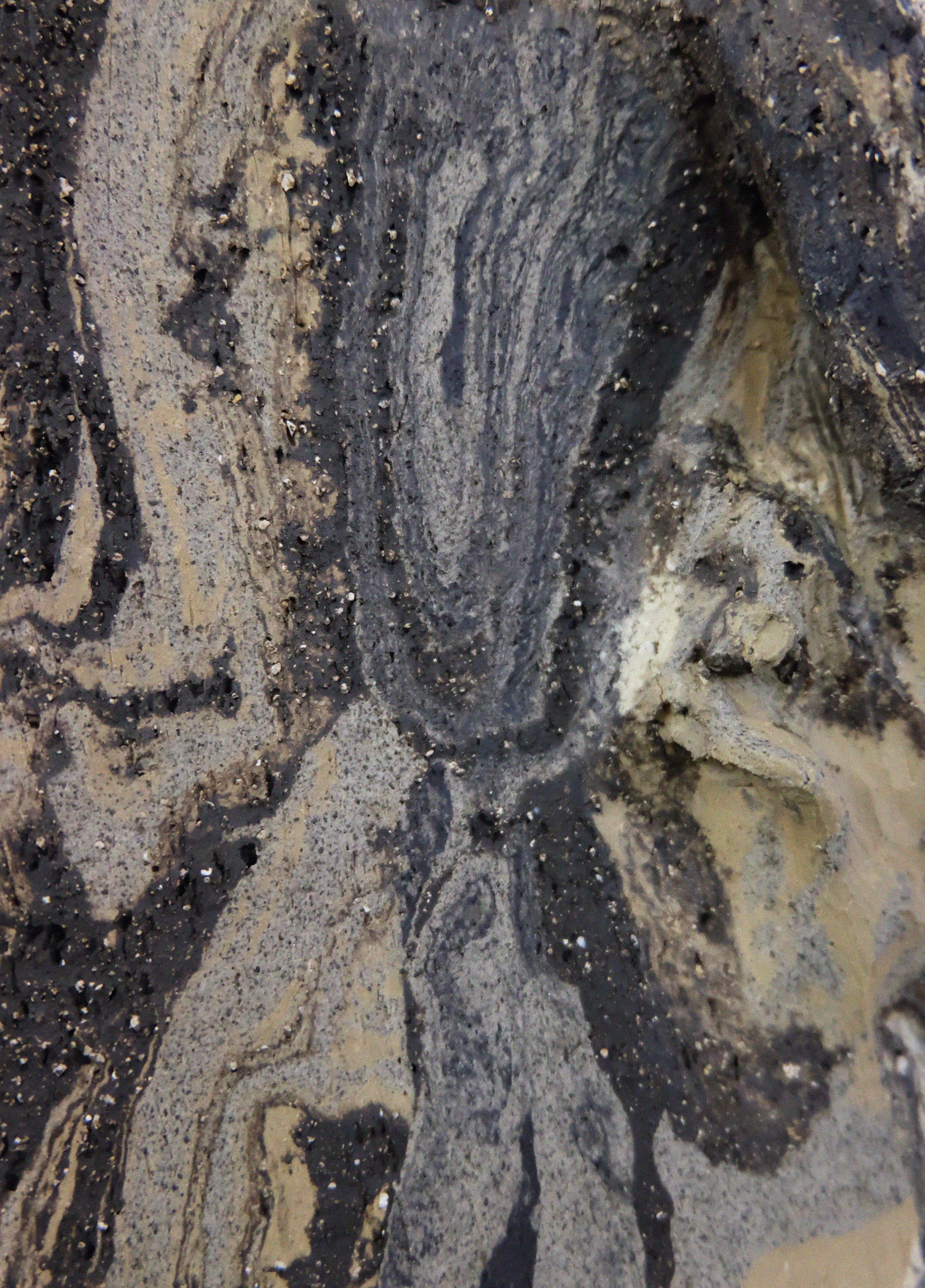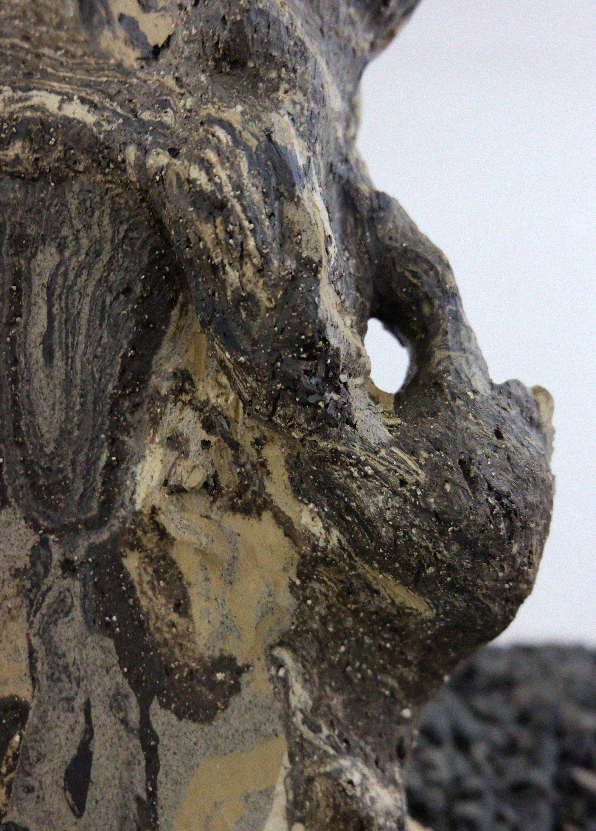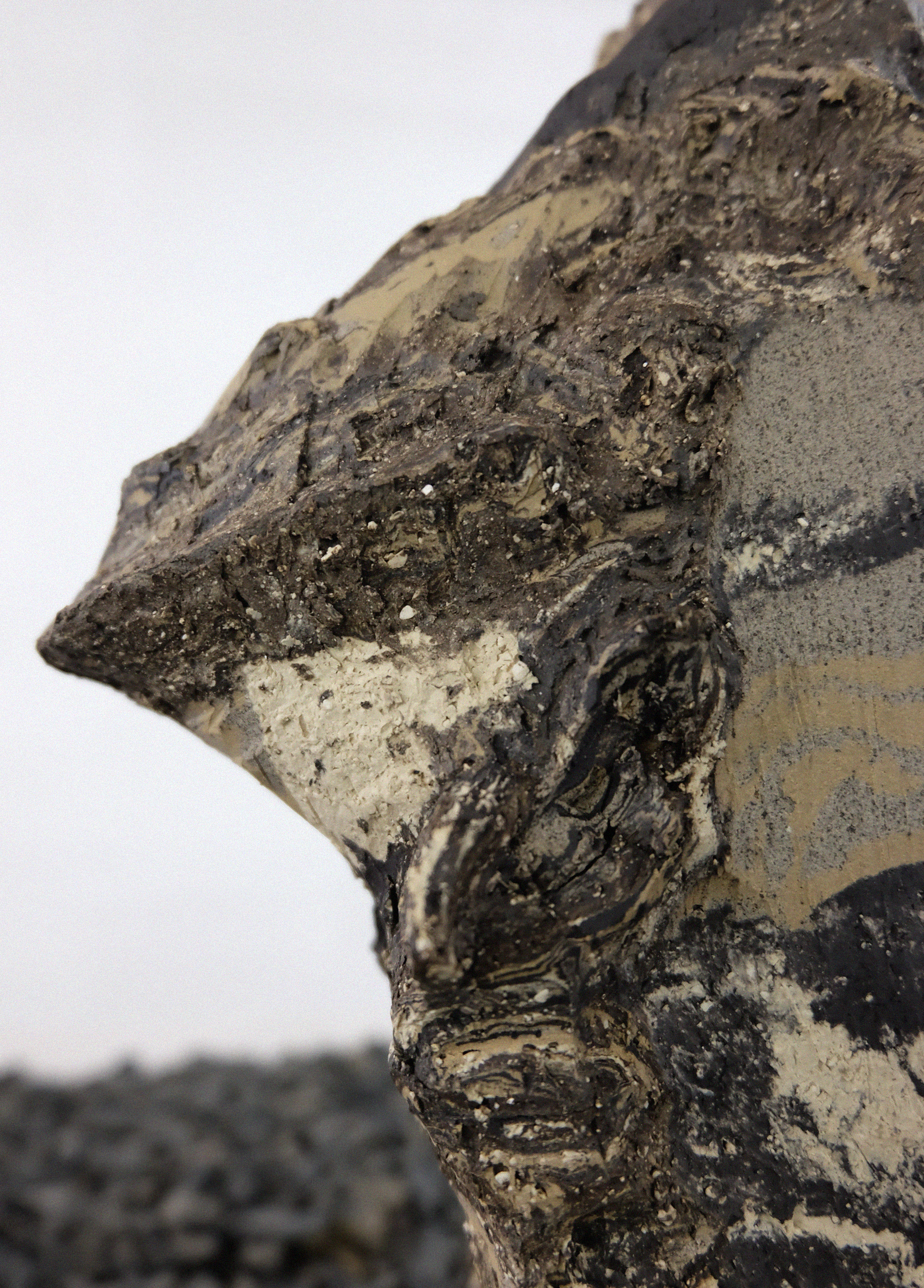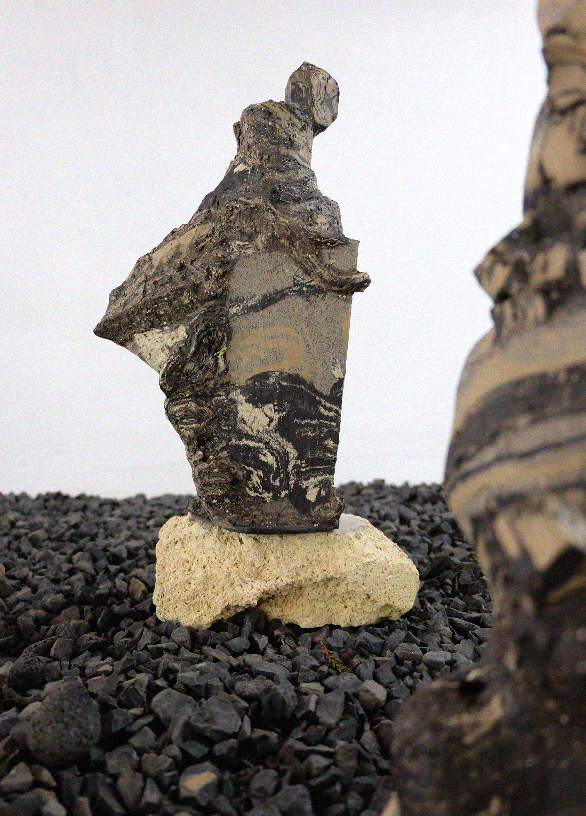 I fell into the magical trap of the icy landscape, the romantic moment of the soft white blanket covering the rugged black volcanoes. These thoughts led me to create these pieces using black and white stone clay to imitate the snowy black sand landscape under my feet—"The Snow Black".